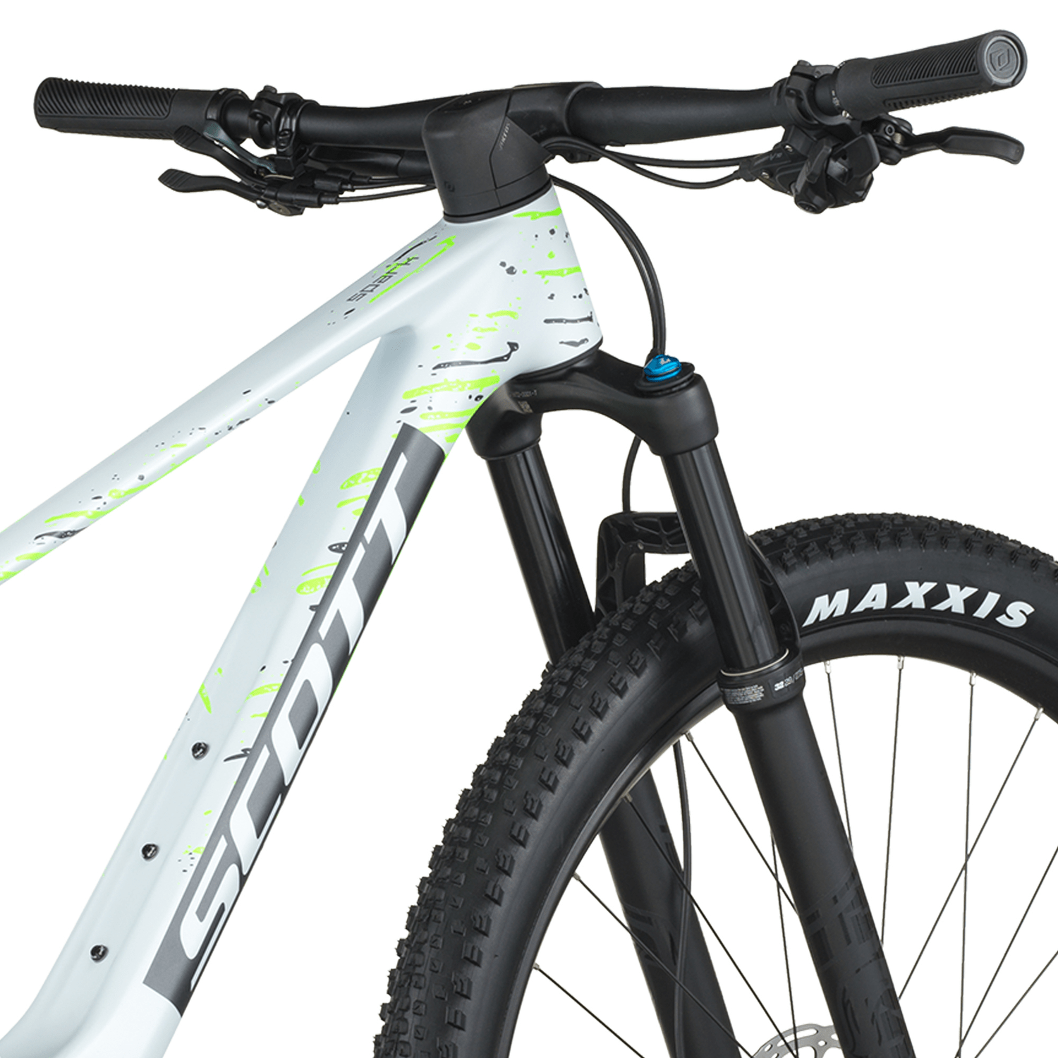 - Quadro: Scott Spark RC Carbon HMF, Integrated Suspension Technology, Flex Pivot, BB92, eixo traseiro 12x148 mm, roteamento de cabos integrado