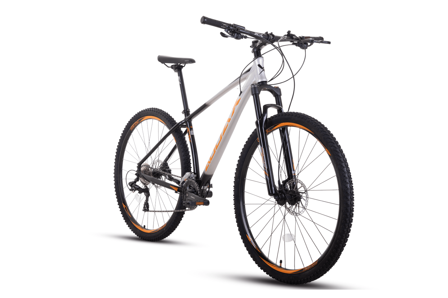 - Pneus 29x2.10 para boa rolagem e aderência no uso misto