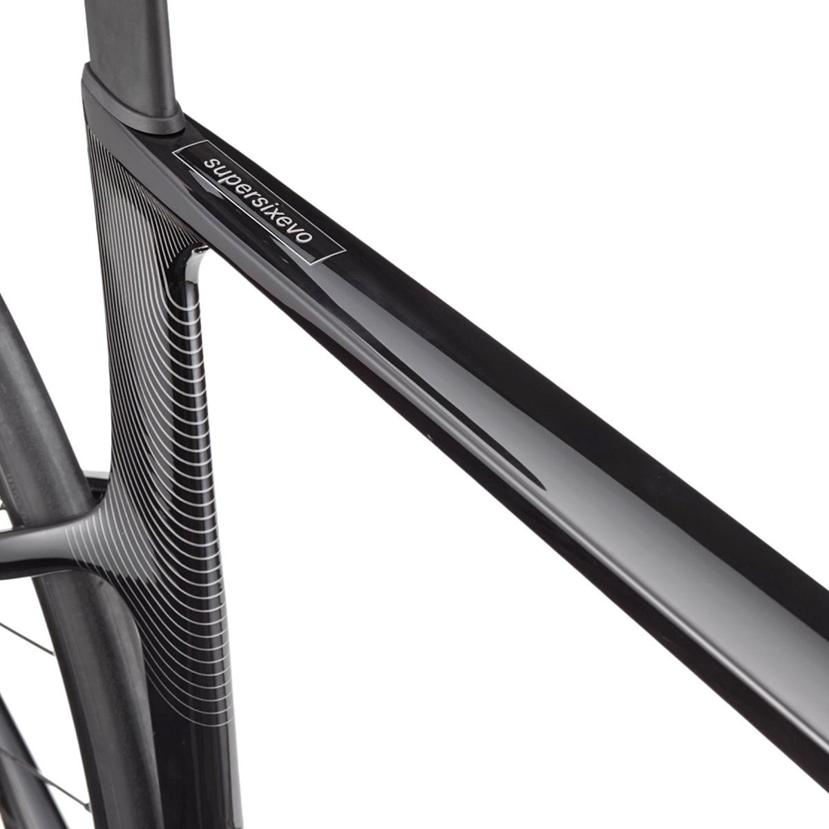 - Quadro: SuperSix EVO Carbon Hi-Mod, compatível com freios a disco, roteamento interno dos cabos, eixo traseiro 12×142 mm
