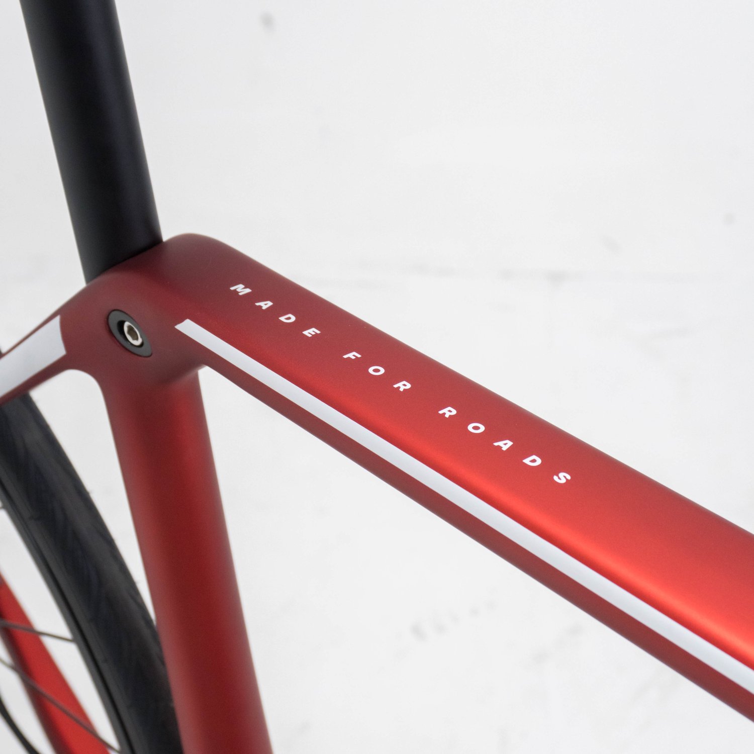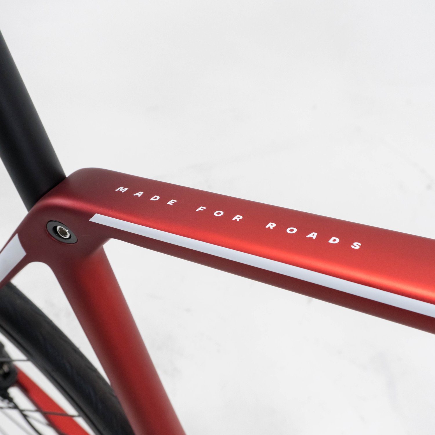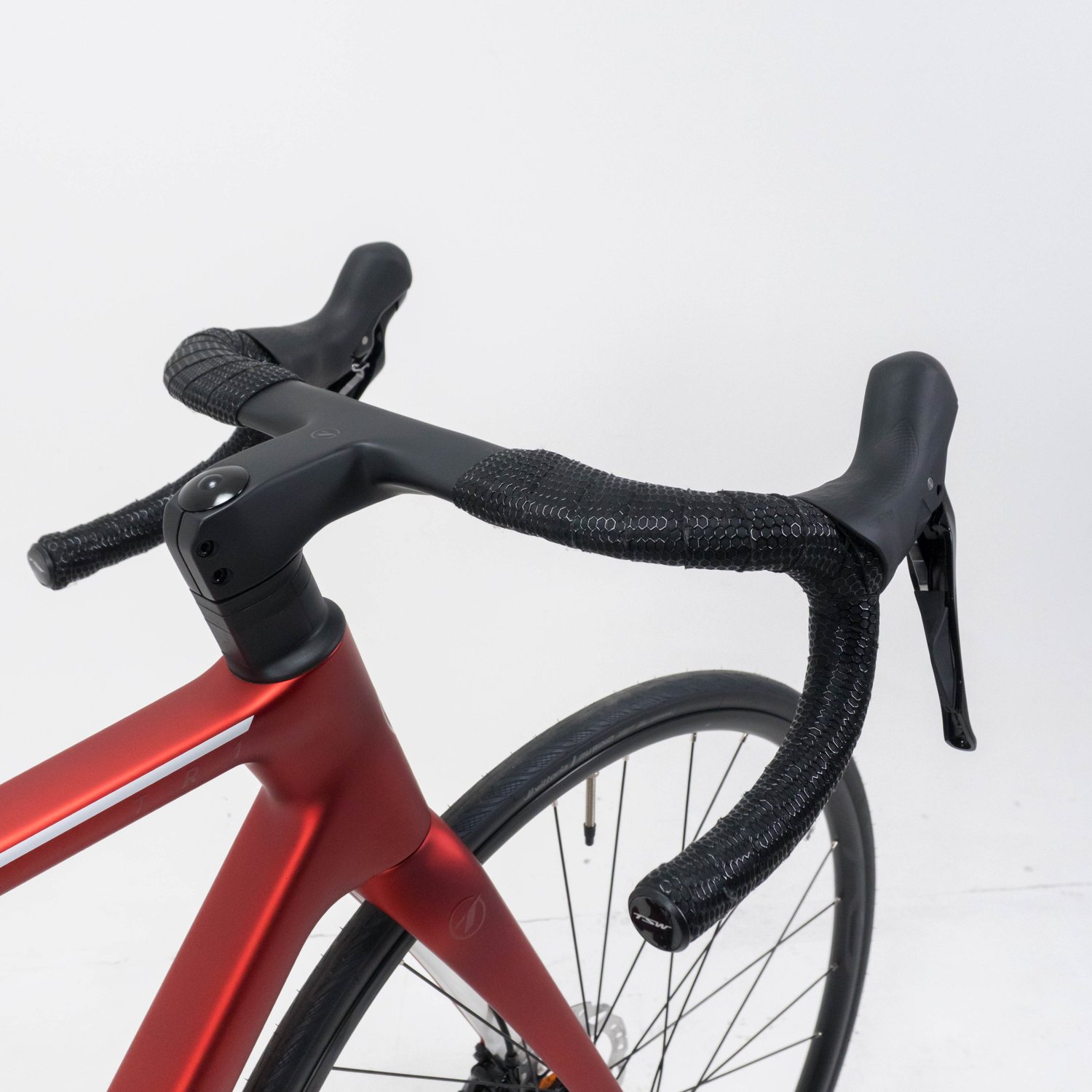 Seu quadro em carbono Toray, referência em rigidez e absorção de impactos, oferece uma condução precisa e confortável. A geometria Climb foi pensada para equilibrar agilidade e estabilidade, garantindo eficiência nas acelerações e segurança nas descidas. Além disso, o design com cabeamento interno mantém o visual limpo e moderno, reduzindo a resistência ao vento e protegendo os cabos contra sujeira e desgaste.