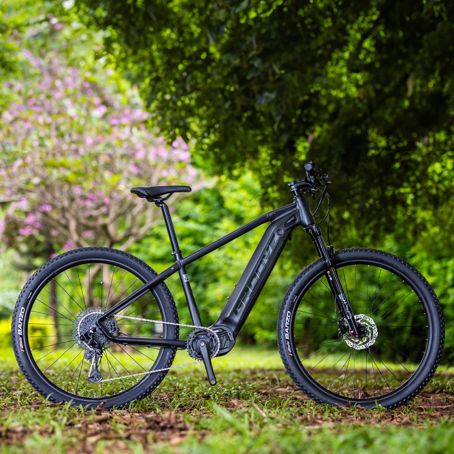 O conjunto de motor Bafang M410 com até 80 Nm de torque facilita subidas e trechos exigentes, enquanto a transmissão 12 velocidades garante ampla faixa de marchas para diferentes terrenos. A suspensão dianteira com trava no guidão e o canote retrátil aumentam a versatilidade em trilhas, e os freios hidráulicos proporcionam frenagens seguras e progressivas. A Groove E-SKA 7 é uma opção atraente para quem busca performance prática sem abrir mão da robustez.