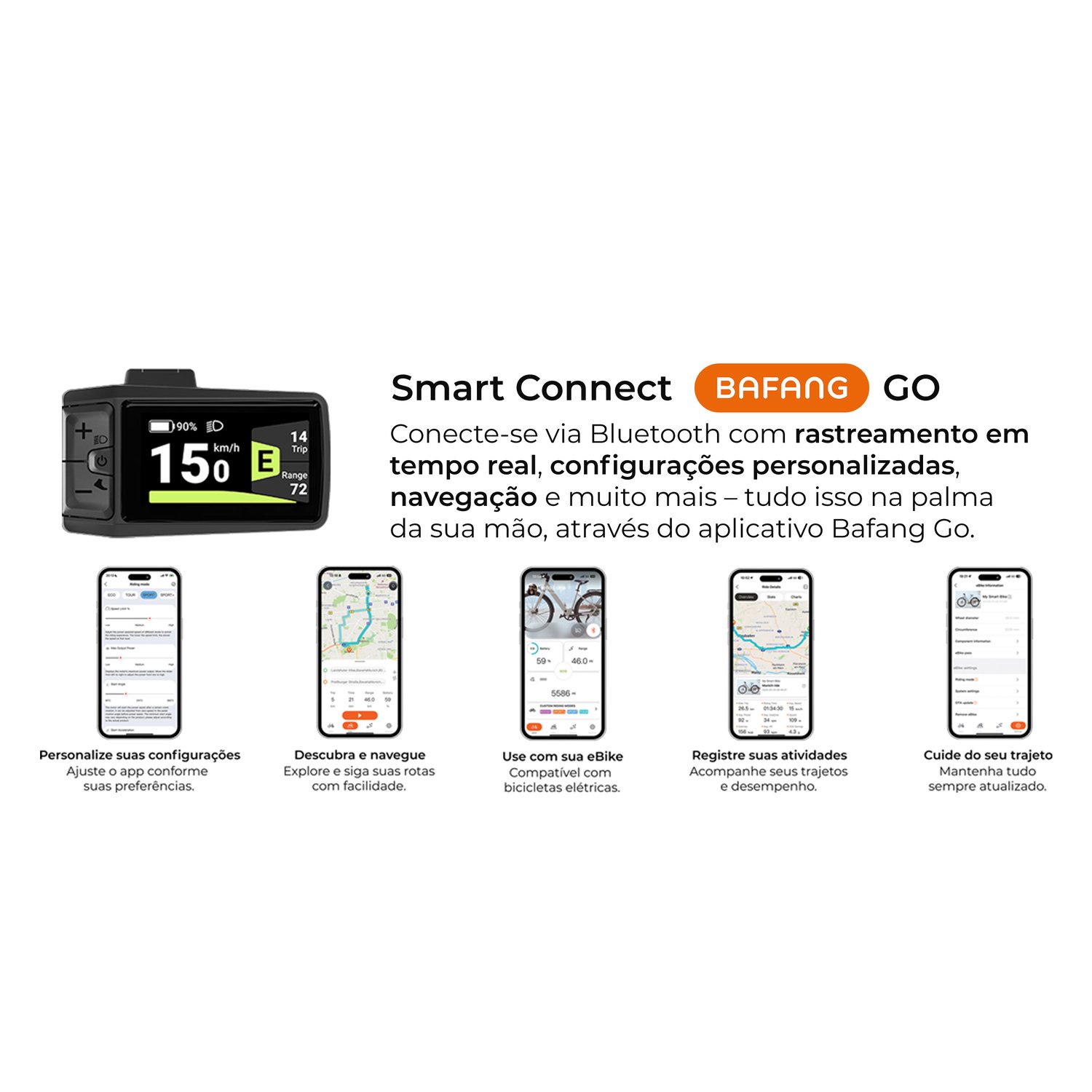 - O aplicativo Bafang GO permite controlar e configurar várias funções da moto: monitoramento em tempo real, navegação, ajustes do motor etc. :contentReference[oaicite:14]{index=14}