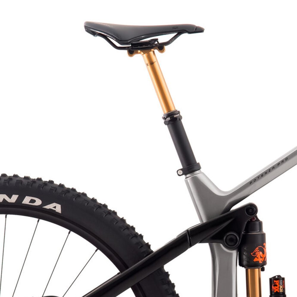- Conforto pensado no longo curso, com espigão e cockpit ajustáveis para bike fit preciso.