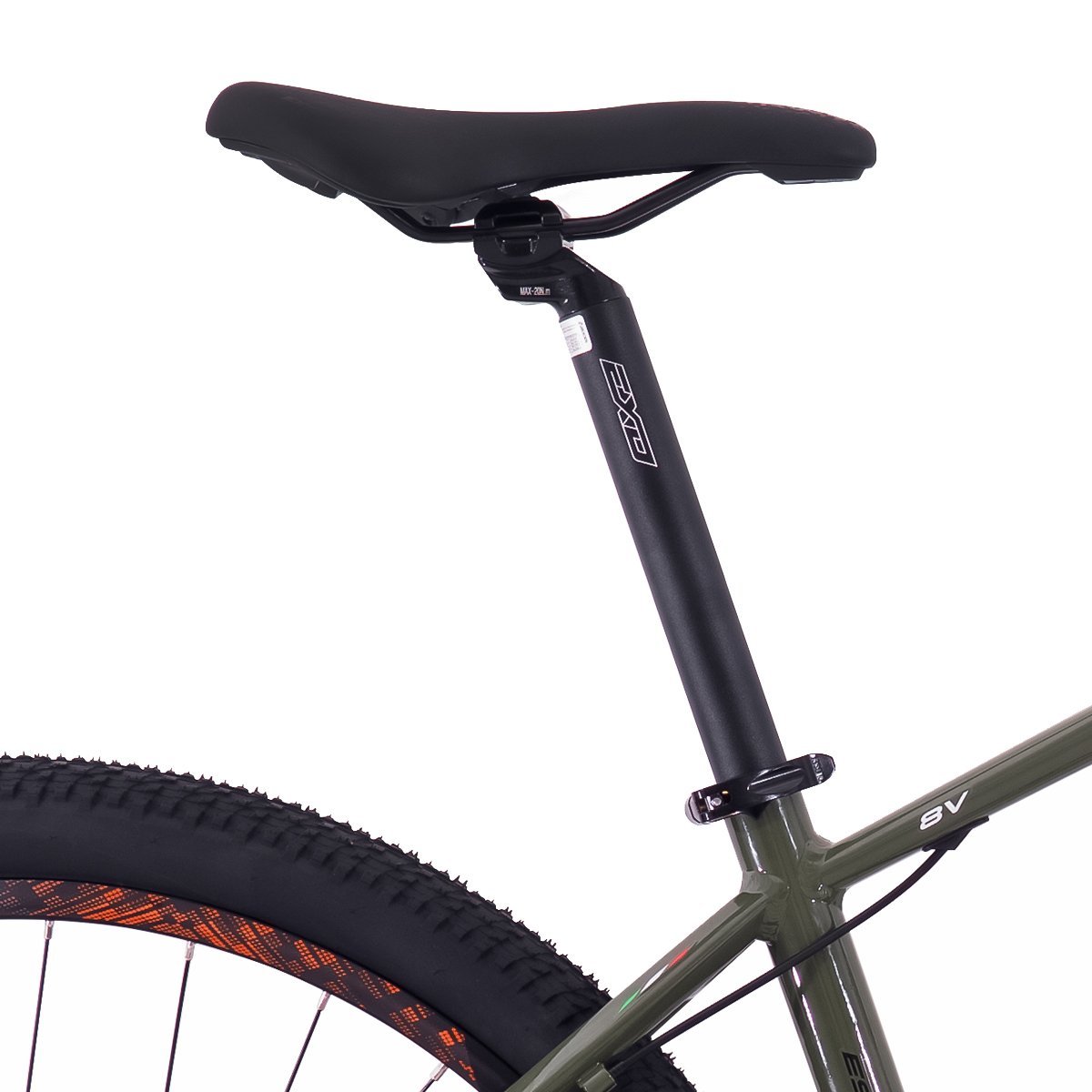 - Transmissão Shimano ESSA 8v com cassete 11-45, oferecendo boa relação de marchas para subidas e trechos planos.