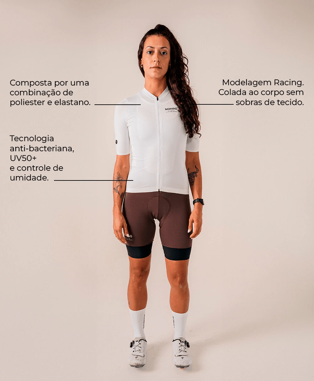 CAMISA DE CICLISMO NOMAD RACING APEX BRANCO FEMININO