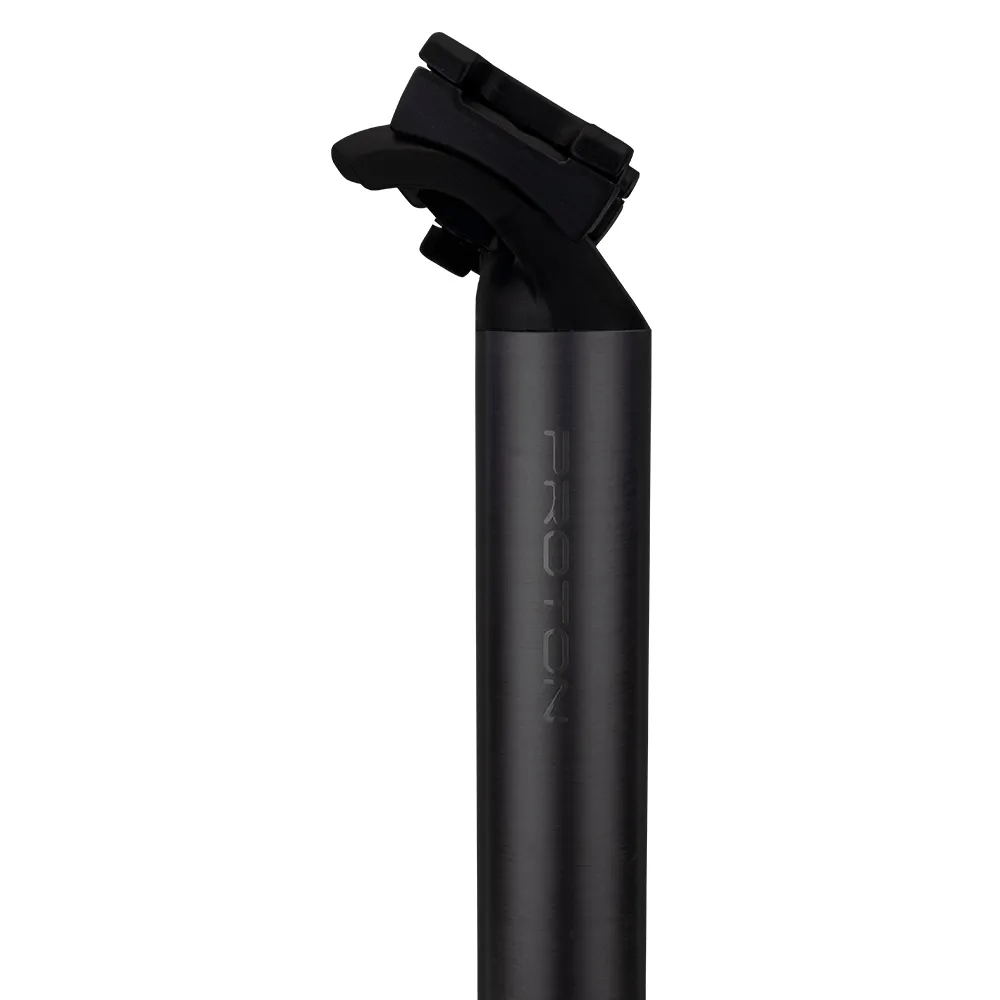 O Canote Proton foi projetado para ciclistas que buscam um desempenho excepcional, aliando leveza, resistência e um design sofisticado. Fabricado em carbono UD (unidirecional), ele pesa apenas 260 g na versão de 27,2 mm e 290 g na de 31,6 mm, ambas com 400 mm de altura. Seu sistema de fixação de selim com microajuste possibilita ajustes precisos, enquanto o offset de 24 mm garante a ergonomia e o conforto ideais. Com acabamento em preto fosco, o canote oferece não apenas um design moderno, mas também uma durabilidade incomparável, sendo a escolha perfeita para quem busca alta performance. A estrutura em carbono proporciona rigidez otimizada, melhorando a transferência de potência e minimizando a fadiga em longos pedais.