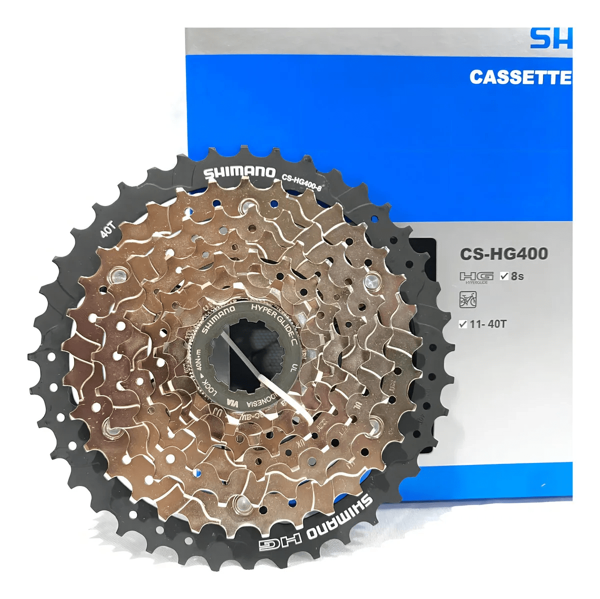 O Cassete Shimano Alivio CS-HG400 8 velocidades com relação 11-40D é uma excelente escolha para quem quer ampliar o alcance de marchas, principalmente para subidas e terrenos mais exigentes. Ideal para bikes com transmissão 8v, ele entrega trocas consistentes e durabilidade no padrão Shimano.