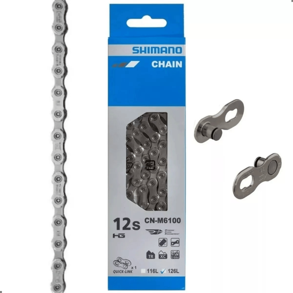 Corrente Shimano 12v Deore M6100 Compatível com Grupos Shimano (Deore 12v, SLX 12v, XT 12v, XTR 12v); Sram (SX, NX, XX0, XX1); Absolute 12v; XTime 12v; outros...