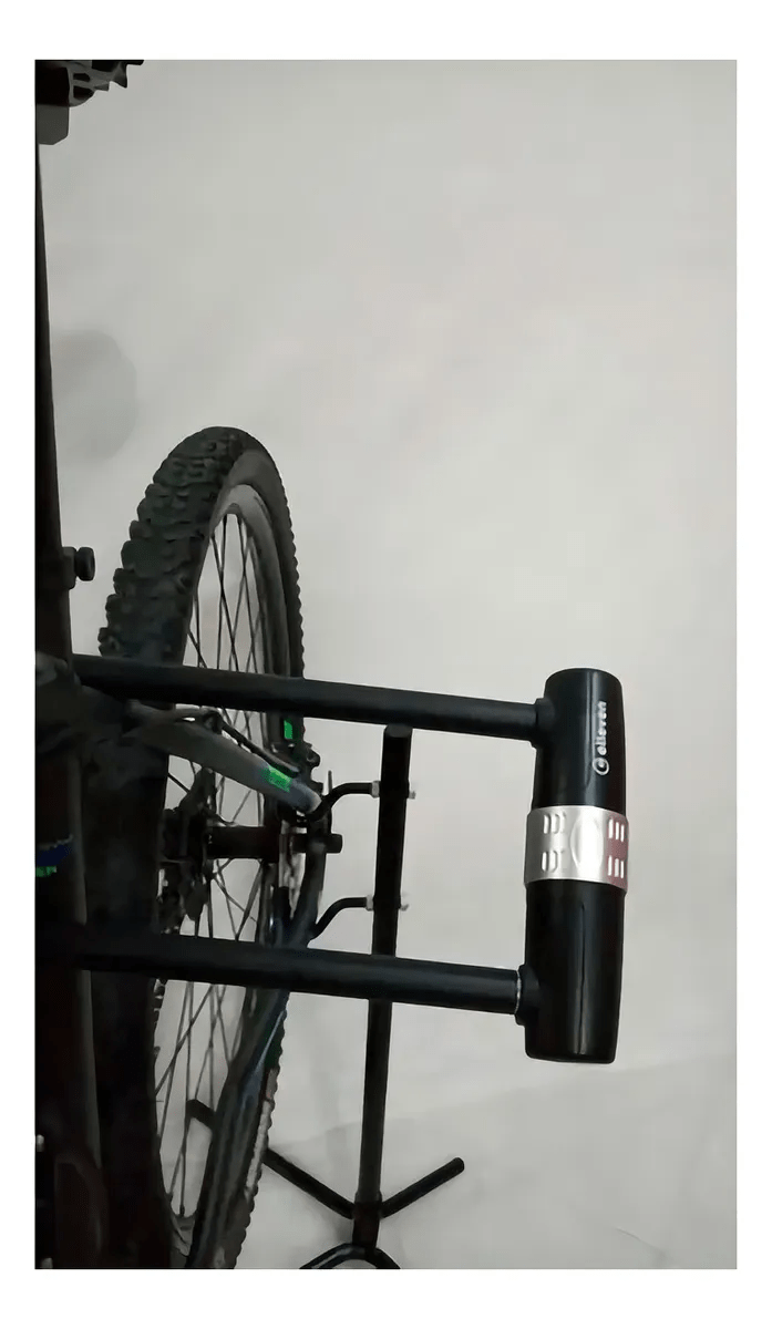 Com 32cm de altura e 17cm de largura, permite prender a bicicleta com facilidade em postes, grades e bicicletários.