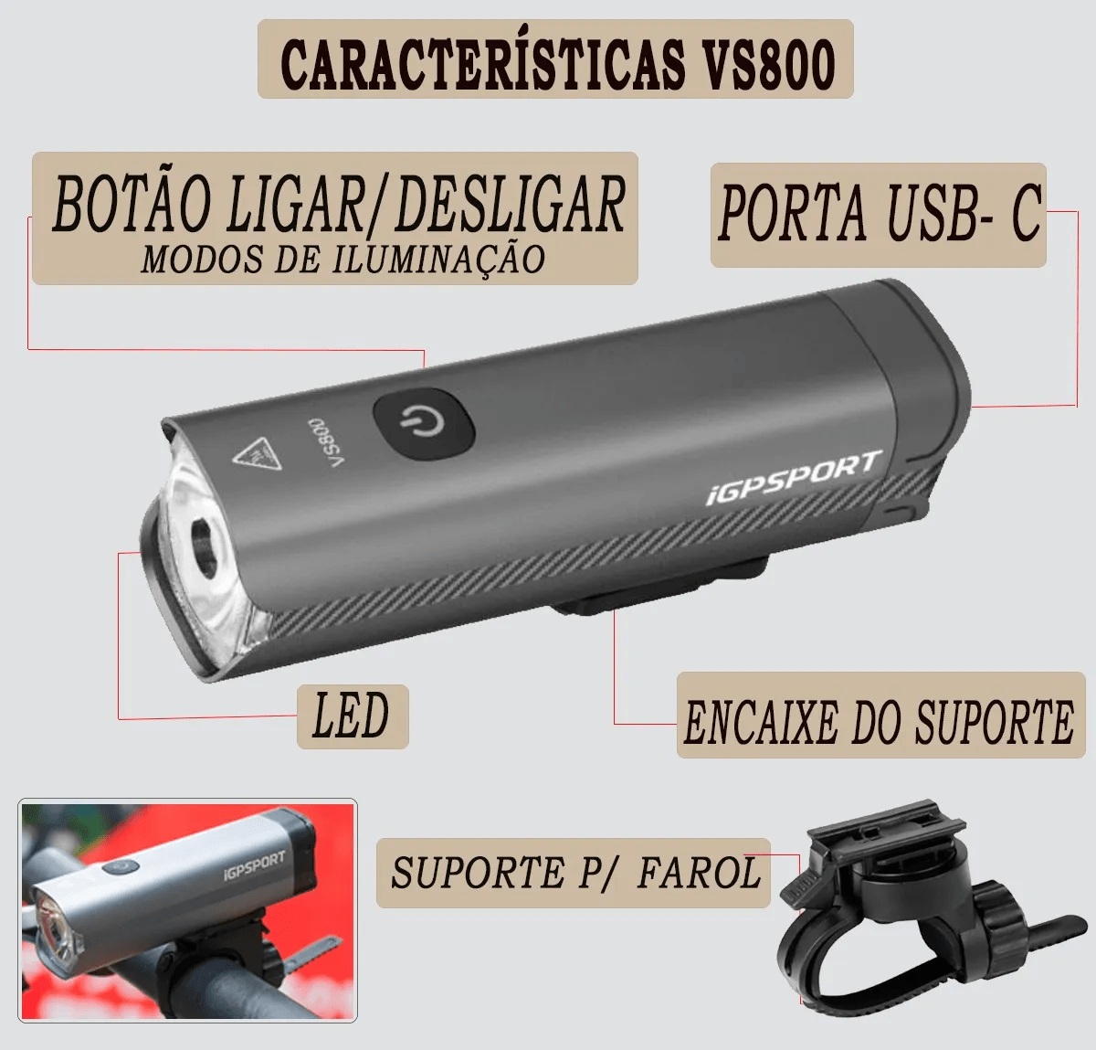 A Lanterna iGPSPORT VS800 é a escolha ideal para ciclistas que buscam segurança, desempenho e tecnologia em seus pedais. Com 800 lumens de potência, ela oferece excelente visibilidade em ambientes urbanos e trilhas, garantindo maior segurança durante a noite ou em condições de baixa luminosidade.