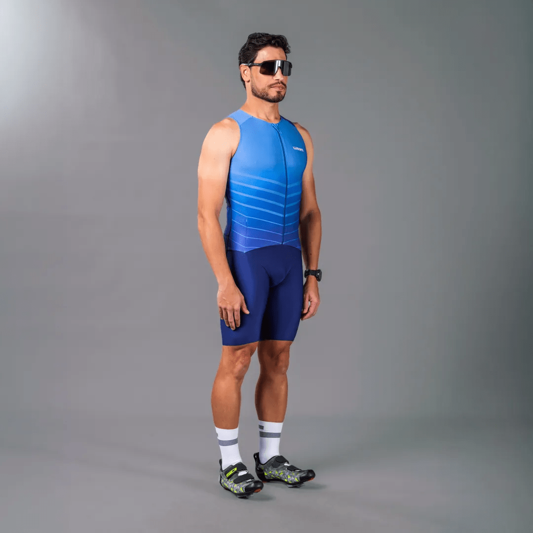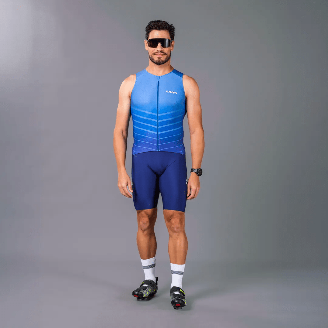 O Macaquinho de Triathlon Woom 140 Masculino II foi desenvolvido para entregar performance, conforto e praticidade em todas as distâncias do triathlon — do Sprint ao Ironman. A peça foi pensada para o atleta que quer um macaquinho eficiente no pedal, confortável na corrida e funcional na transição, com construção voltada para ajuste anatômico e controle térmico durante esforços longos.