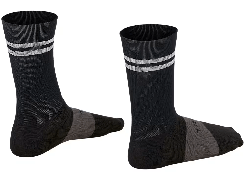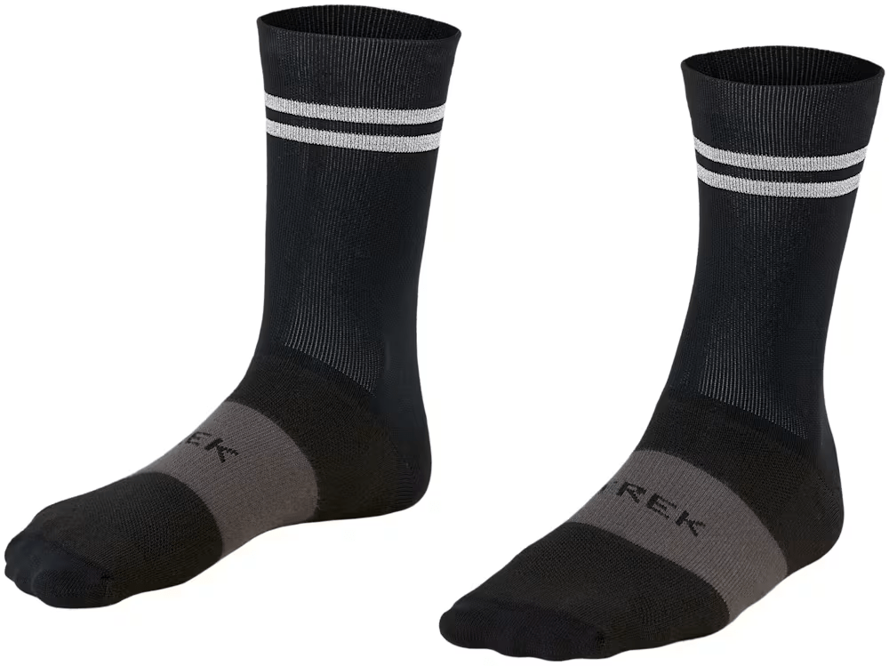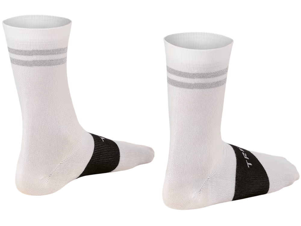 A Meia Refletiva Trek Race Crew é uma meia de performance com cano mais alto (estilo “crew”), feita para pedalar com conforto e mais segurança em condições de baixa luz. Ela combina fios macios com compressão na medida certa, pontos de ventilação para respirar melhor e detalhes refletivos para aumentar sua visibilidade no pedal.
