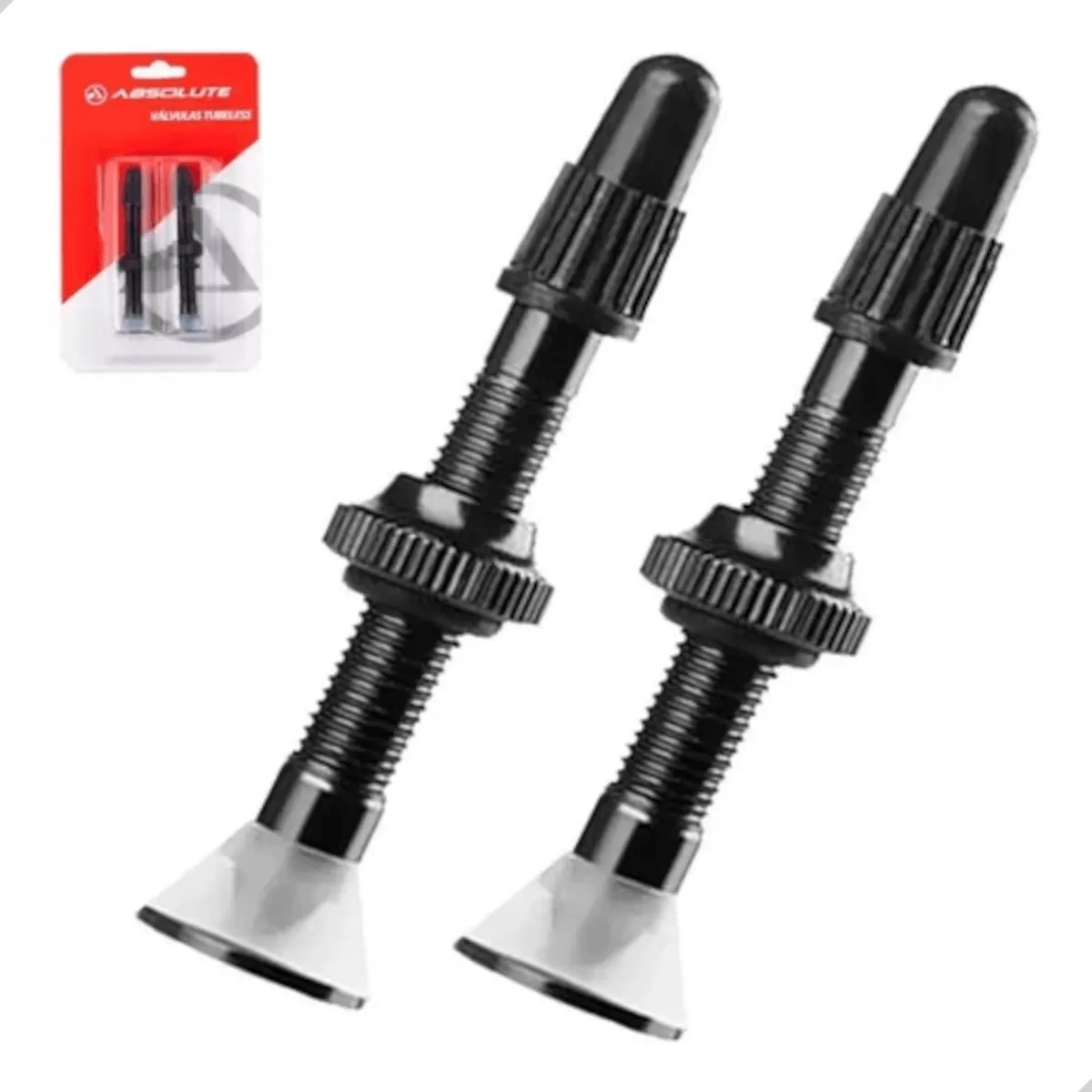 Par de válvulas bicos tubeless Absolute Presta em alumínio com 48mm de comprimento.