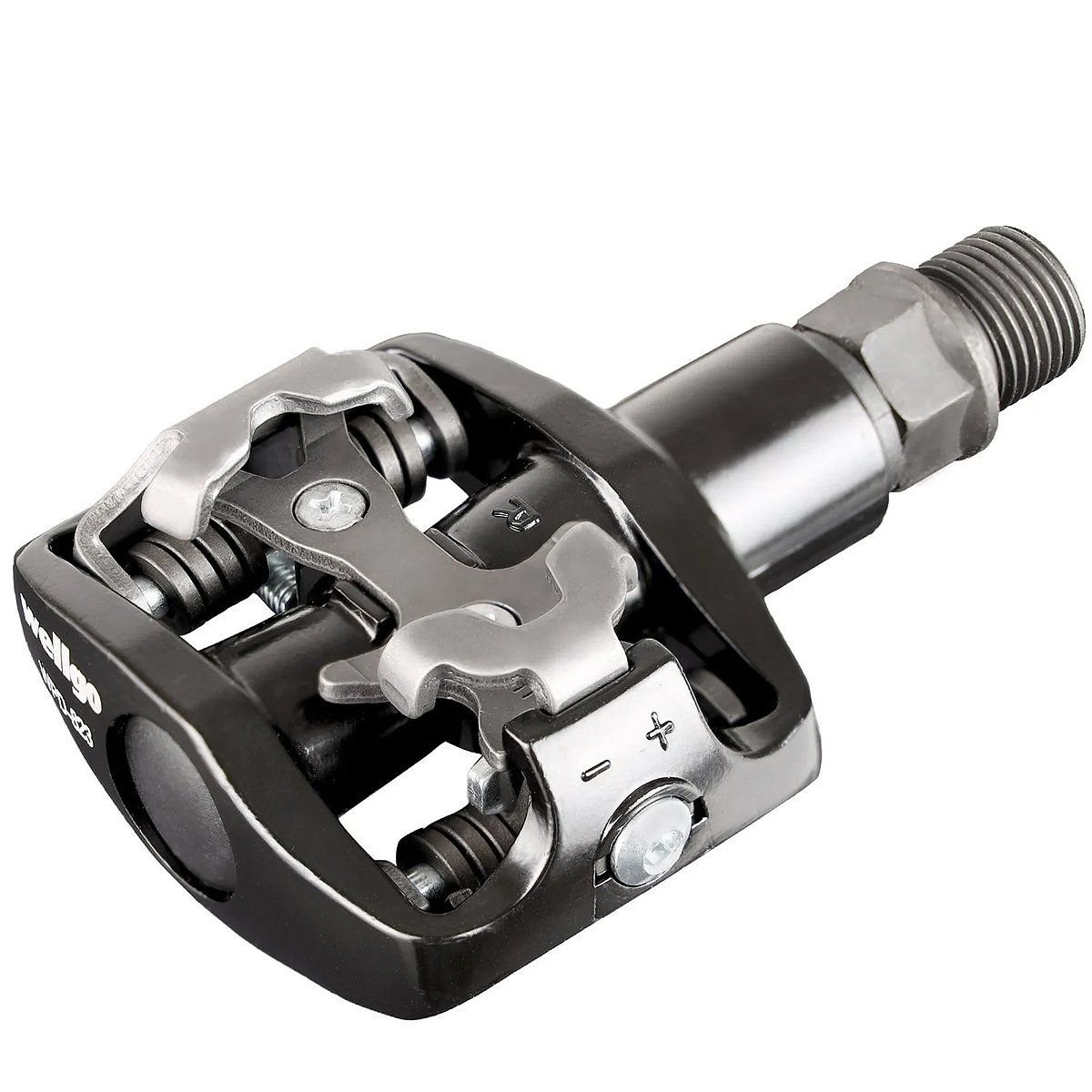Fabricado com corpo em alumínio usinado e eixo em Cr-Mo (aço cromo-molibdênio), o Wellgo WPD-823 combina leveza com robustez. Seu sistema de mola dupla permite ajustar a tensão de entrada e saída, garantindo encaixe seguro e personalizado conforme a preferência do ciclista. É uma excelente opção para quem utiliza tacos padrão SPD (como Shimano SM-51), oferecendo compatibilidade total e pedaladas mais eficientes.