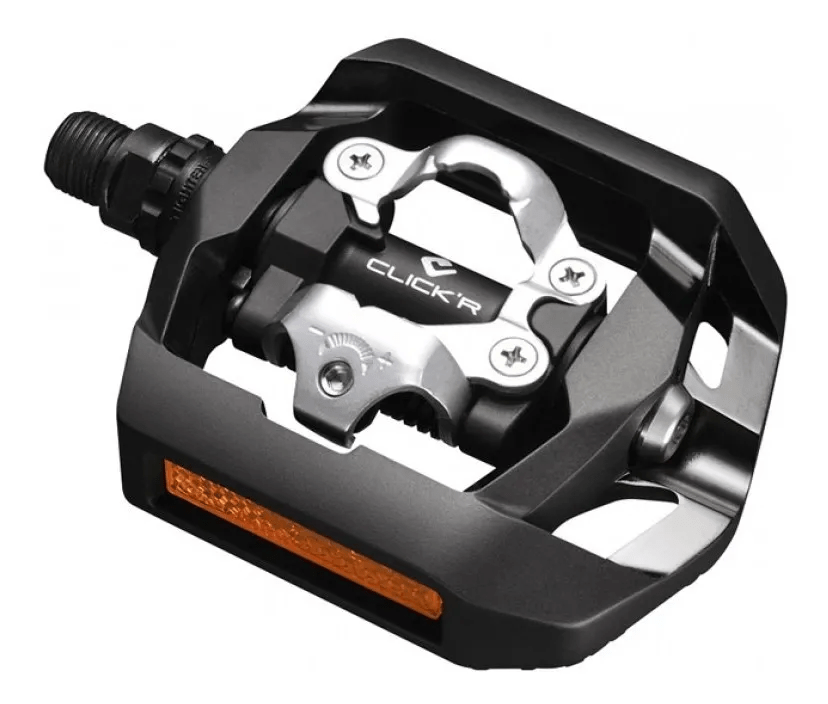 O Shimano PD-T421 Click’R é o pedal perfeito para quem quer começar no clip (SPD) com mais facilidade e segurança, sem abrir mão da praticidade de um lado plataforma. Ele traz o sistema CLICK’R, com mola mais leve e encaixe/desencaixe mais fácil que um SPD tradicional, ideal para uso urbano, cicloturismo e MTB leve. Do outro lado, a plataforma possui formato côncavo e superfície antiderrapante para pedalar com tênis quando quiser. Acompanha o taco Shimano SM-SH56 (desencaixe multidirecional), excelente para iniciantes e para quem busca mais facilidade na hora de soltar o pé.