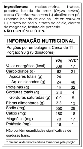 Outro diferencial é a utilização de cacau em pó 100% natural, proporcionando sabor agradável e sem uso de aromas artificiais. O produto possui formulação clean label, sendo livre de corantes, conservantes e ingredientes artificiais, tornando-se uma excelente opção para quem busca suplementação mais natural. :contentReference[oaicite:2]{index=2}