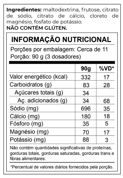 - Misture 1 sachê (90g) em água (quantidade conforme sua preferência/estratégia de hidratação)