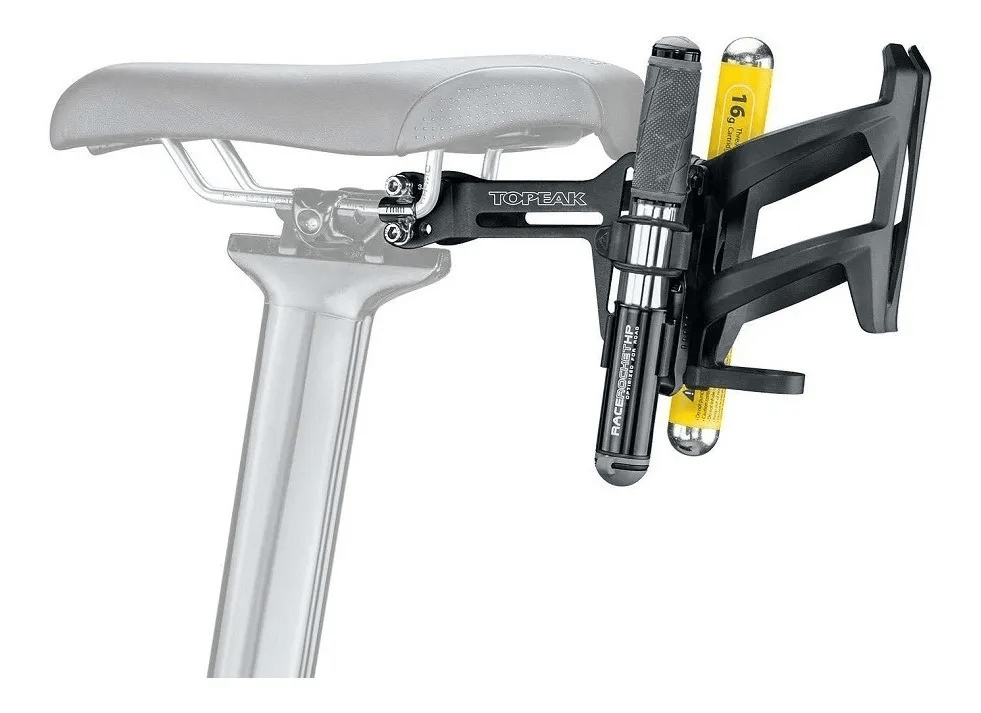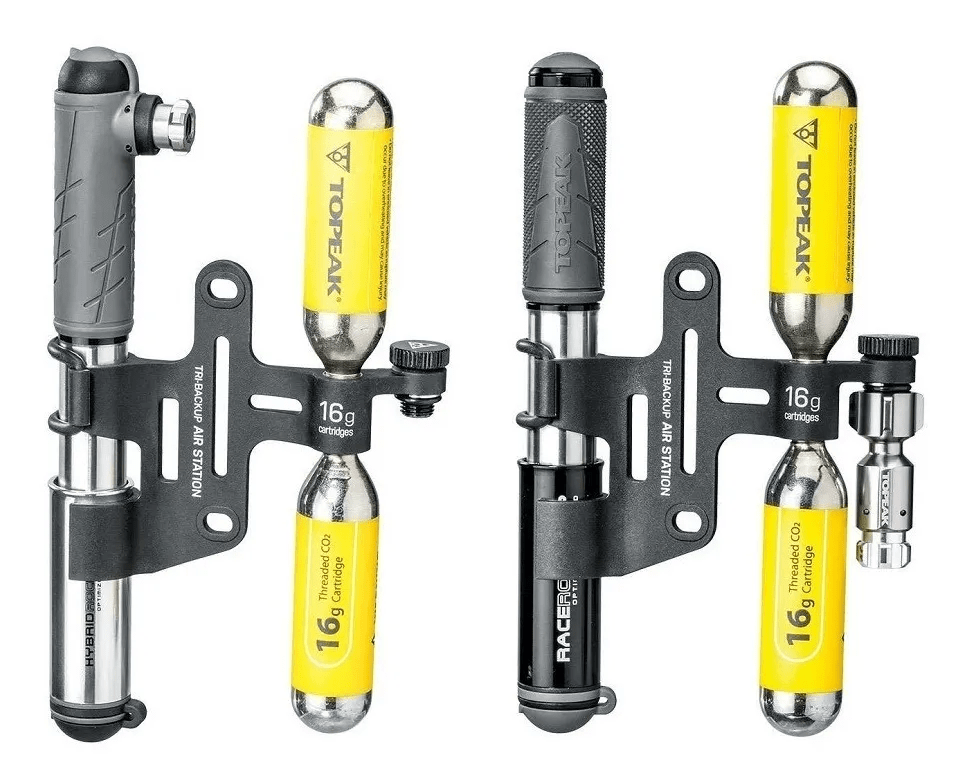 - Suporte 3 em 1: prende inflador CO2 + 2 cartuchos 16g + mini bomba no mesmo lugar