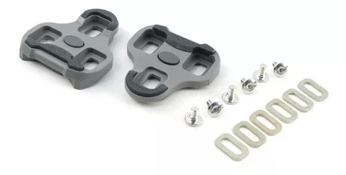Compatível apenas com pedais Look de estrada no padrão Kéo, os tacos cinza têm a flutuação de 4,5°, têm ajuste lateral de até 4mm, possuem ajuste longitudinal de até 9mm e acompanham os parafusos para fixação.