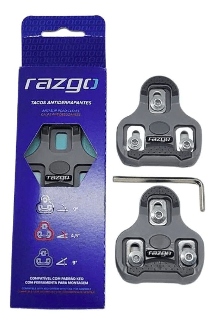 O taquinho cinza padrão KEO é ideal para ciclistas de estrada que utilizam pedais Look Road e desejam um equilíbrio perfeito entre firmeza e liberdade de movimento. Com 4,5° de flutuação angular, ele permite leves ajustes no joelho durante o pedal, proporcionando mais conforto e reduzindo o risco de lesões por posicionamento fixo excessivo.